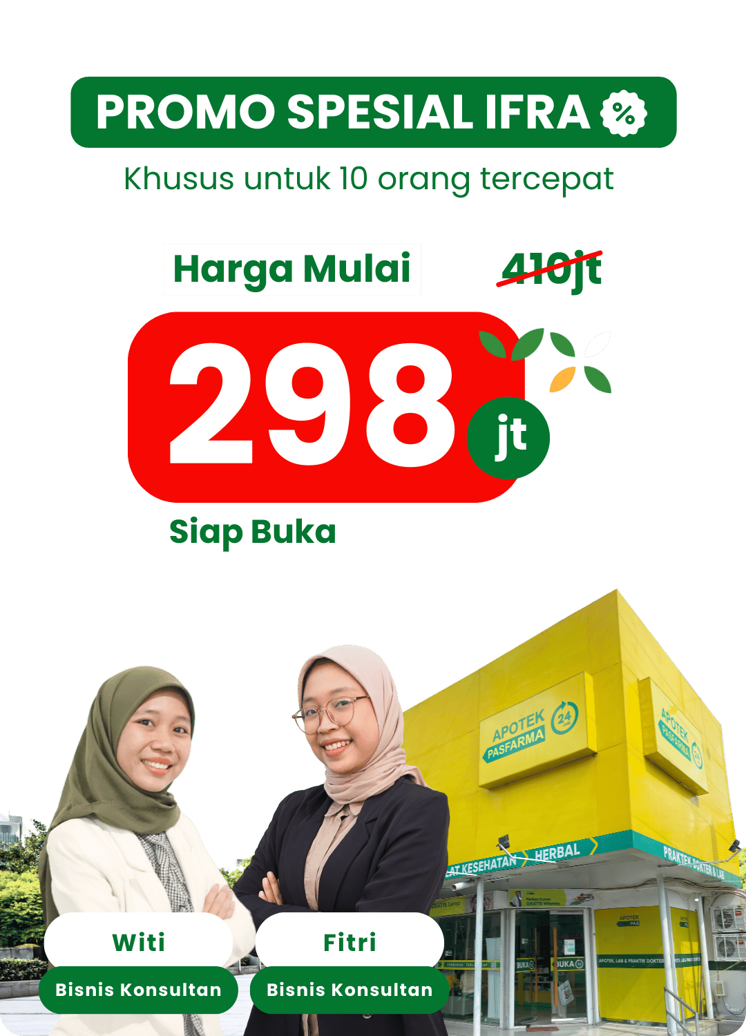 Sebagai salah satu brand kemitraan apotek terpercaya di Indonesia, Pasfarma rutin mengikuti IFRA setiap tahun untuk membantu lebih banyak orang memulai bisnis apotek dengan mudah.